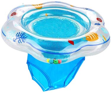 How to use it? Step 1: Inflate the swimming ring, first fill the small air chamber with gas, and then fill the air chamber with gas. Step 2: Put the swimming ring on the baby. Step 3: Put the baby in the water.   Note: When the baby is playing with water, the mother should not leave the baby alone in the bathroom.   Swimming Ring Size: Outer diameter: 20.07 Inch Inner diameter: 8.26 Inch  Features: 1.Suitable for the age 6 - 36 months baby. 2.Made of PVC, It is a waterproof, non-toxic, durable and soft material, take care of the delicate skin of your baby. 3.Designed with grooves that can be placed on the chin to make the baby feel comfortable. 4.It can be used in swimming pools, outdoor activities, party activities, kindergarten play. 5. Don’t fill too much, 80%-90% is enough