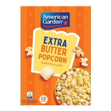 American Garden Gluten-Free Microwave Extra Butter Popcorn 3 Bags, 273g