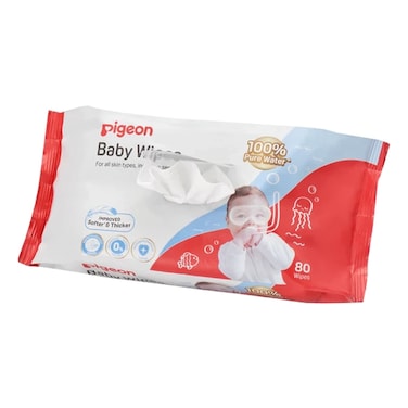 Pigeon Baby Water Wipes with Lid 80 Wipes are perfect for keeping your baby clean and fresh throughout the day. These wipes are gentle on your baby's delicate skin and are made with 99% pure water, making them safe for even the most sensitive skin.