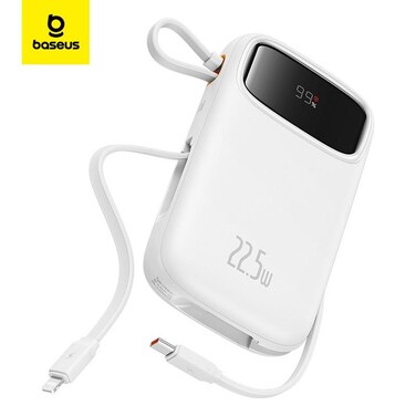 Baseus Portable Charger Power Bank 22.5W20000mAh Fast Charging Portable Phone Charger With Built In Lightning And USB C Output Cable LED Display Battery Pack For iPhone Samsung Android Pixel iPadWhite