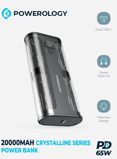 Powerology Crystalline Series Powerbank 20000mAh PD 65W - Transparent/Grey
