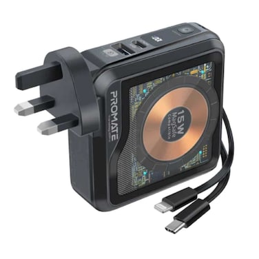 Promate Transparent Magsafe 10000mAh Power Bank With AC Charger