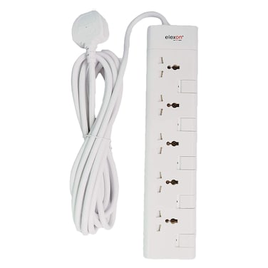 The Elexon 5-Way Power Extension Socket 13A El-903S is a white power extension socket with a 3-meter long cable.
