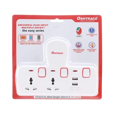 The Oshtraco 2 Way T-Socket With 2 USB White is a convenient and versatile power socket that allows you to charge multiple devices at once.