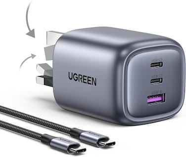 UGREEN Nexode 65W USB C Charger Cable 3-Port Foldable GaN Laptop Charger Type C Fast Wall Charger Plug with 100W USB C Cable