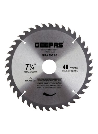 - <p>Circular saw blade is made of high-quality material, which is of high hardness and is sturdy in use<p>Durable carbide tips are for incisive cuts and long life has 40 ATB calibered teeth<p>Circular saw blade is designed with thin 2mm kerf, which is for fast and smooth cutting action<p>Color Name: Silver/Black<p>Model Number: GPA59210<p>Size: 185x2x30 millimeter
