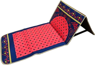 Fabienne Chair Prayer Mat Printed with Back Support 55x110 cm Medical Prayer Rug Meditation Mat Luxury Ramadan and Eid Gift Mat Portable Strong Chair Sajadah Red Pink/Blue