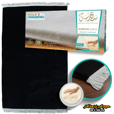 - Prayer Mat "Sundus Gold" with Memory Foam Filling - Suitable for All Ages, Especially the Elderly. This prayer mat is the best in providing complete comfort and maintaining joint and muscle safety during prayers and while sitting for Quran recitation. The memory foam is known for its ability to expand and contract according to pressure, and it is highly durable, lasting for a long time. It also regains its original shape after pressure is applied during prayers or sitting. "Sundus Gold" comes with an elegant and luxurious design, in a large and comfortable size, covered with a soft and smooth cotton fabric of the finest quality. It is equipped with a zipper for easy washing and storage. Available in multiple elegant colors. Made in Turkey. Dimensions: 80×130 cm Weight: 2.65 .