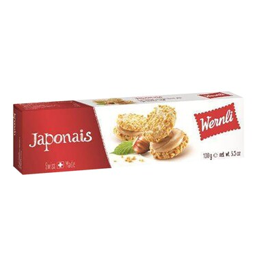 Wernli Japonais Almond Meringue Biscuit with Hazelnut Cream Filling, 100g
