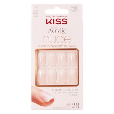 - The Kiss Salon Acrylic Nails contains beautiful, thin and ready-to-wear artificial nails which have latest designs and beautiful acrylic hues to adorn the fingers and toes