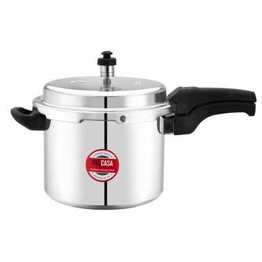 Healthier Cooking in No Time, Suitable for everyday use.Pressure cooking is a quick, healthy, and more effective way of cooking food. Pressure cooking not only saves energy and time due to faster cooking periods but helps food retain more nutrients for healthier, tastier results. Cook meals in this all-in-one versatile piece of cookware and enjoy a cooler kitchen with less washing up to do after eating.Suitable for everyday use, this 5-liter pressure cooker is made from strong durable aluminium construction and is ideal for cooking gorgeous meals from scratch for the whole family when you are short of time.Brown, boil, steam, braise, stew, and roast, this pressure cooker is ideal for meats, fish, vegetables, and grains. Whether it's a hearty stew, spicy chili, or a succulent joint of roasted meat in as little as 30-40 minutes, pressure cooking offers the ultimate in fuss-free, one-pot cooking. Delcasa 5L pressure cooker is suitable for all hobs including gas, electric, halogen, and ceramic hobs ensure optimum heat distribution allowing you brown, boil, steam, braise, stew, and roast in one pot, making the pressure cooker versatile cooking essential. Featuring an easy to clean pot, a simple hand wash is all that is required to keep the pressure cooker in perfect condition.