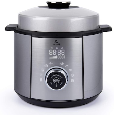 evvoli Pressure Cooker, 6 Liters, 10 Adjustable Programs, 7 Pressure Programs, Non-stick inner pot, Steam tray included, 1100W, EVKA-PC6010S