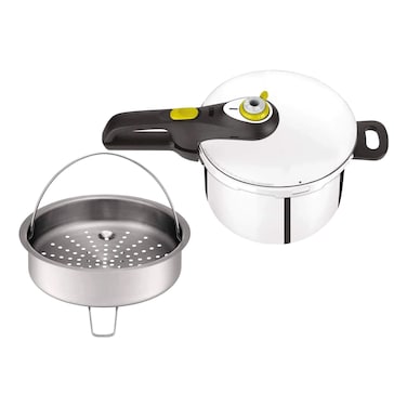 The Tefal Secure5 Neo Pressure Cooker in silver is a versatile and efficient kitchen appliance.