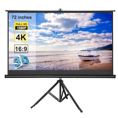 Generic-72 inches Projector Screen with Tripod Stand 16:9 Portable Projection Screen 4K 3D Projector Movies Screen for Home Office Indoor Outdoor Use
