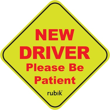 Rubik Magnetic New Driver Car Sign Sticker,Driver Please Be Patient,Highly Reflective Removable and Reusable for Car SUV Van Drivers 15x15c Yellow/Red