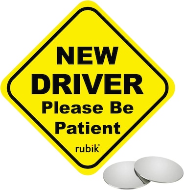 Rubik Magnetic New Driver Car Sign Sticker, New Driver Please Be Patient, Highly Reflective Removable and Reusable, SUV Van Drivers (15x15cm)