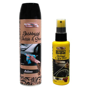 <p>Keep your car's dashboard looking sleek and shiny with Smart Car Dashboard Polish and Shine Bakhour 500ml. This high-quality product not only cleans and polishes your dashboard, but also provides a protective layer to keep it looking new for longer. <p>For a quick and easy way to shine up your dashboard and tires, try Smart Shine Dashboard and Tyre Polish Strawberry 118ml. This convenient product not only adds a glossy finish to your dashboard, but also leaves your tires looking fresh and clean. <p>With Smart Car Dashboard Polish and Shine Bakhour 500ml and Smart Shine Dashboard and Tyre Polish Strawberry 118ml, you can easily maintain the interior and exterior of your car, giving it a professional and polished look that will impress everyone who sees it.