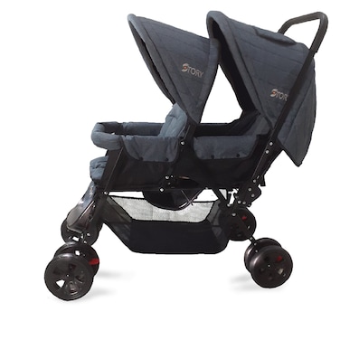 - Together we make a lovely Story for you! This Double Stroller by Teknum is perfect to make some memorable stories together as a famlily. Ideal for twins or siblings, this Stroller is so smooth to ride and slim to pass though the standard gates. The front seat and the back seat can be inclined flat to let the baby sleep comfortably. Made of linen and coushioned seats provide absolute comfort for your little one. A Big Cart basket is enough to carry a lot of items for the twins. Front wheels have smooth swivel and foot activated locks. The Canopy have a transperent cover for the baby to feel comfortable. It's single hand folding system with easy storage while travelling. Specifications • Product Dimensions : 7745105cm. • Product Weight : 11kg • Packaging Dimensions : 472491cm • Packaging Weight : 12Kg • Material : Linen FEATURE • The Story by Teknum double stroller is fit to use for kids up to 3 years for two babies each up to 15 kgs (0-15kg X 2) • Strong Sturdy frame for Twin babies • Both Front and Back seat Can be inclined for sleeping positions as per the need. • 2 x 5 point harness • Transparent Window hood in the Canopy • Made of Linen and Cushioned seats provide absolute comfort • Amazing and Smooth - One Hand Folding system with easy storage Foot activated locks