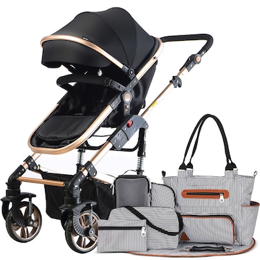 Teknum 3 in 1 Pram Stroller and Diaper Bag Bundle - Black