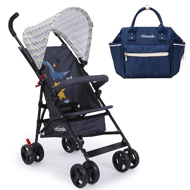 - <div>Teknum Eco - Light Stroller</div><div>• Holds child up to 45 pounds or 15Kg</div><div>• Lightweight and Comfortable. Easy to fold.</div><div>• Stroller Brakes - Stop your stroller anytime and anywhere using only one foot. </div><div>• 360 Swirl Front Wheels along with a lock system.</div><div>• 5 Point Seat Safety Harness for Maximum Safety, along with a Hand Rail for enhanced safety.</div><div>• Extra thick Canopy 300d Fabric for enhanced UV / Sun protection</div><div>• Unique Dinosaur Print and Modern Canopy Print</div><div>• Comes with a Storage Basket to carry along the extra items.</div><div>Alameda Ace Diaper Bags</div><div>• Premium Material : This Alameda Ace Diaper Backpack is made of water - resistant high - density twill nylon, is perfect for Mums and Kids. Easy Wipe Clean.</div><div>• Ultra - light Weight and Fashionable : Alameda Ace Backpack is super light and Convertible! Use it as a Messenger Style or a Backpack. </div><div>• Multi - function : This backpack can be used as daypack or diaper bag with insulated pocket. No matter for Beach, Shopping trip of running or camping, it's really a good choice.</div><div>• Durable & Practical : High - density twill nylon and reinforced straps guarantee the durability of this baby bag. Whenever in outdoor sports or shopping with your kids, this backpack is very practical for baby care.</div><div></div>