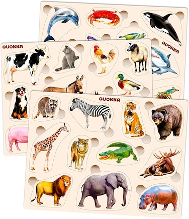 Adducate Quokka Wooden Puzzles For Toddlers 1 2 3 Year Olds, Pack Kids And Babies Matching Game Learning Shapes Real Animals Sea Creatures Educational Wood Preschool Toys Boys Girls Ages 1-3