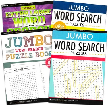 Bendon Publishing Word Find Puzzle Books For Adults Seniors -- Set Of 4 Jumbo Search With Large Print (Over 380 Pages Total)
