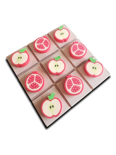 Creative Wooden Base Tic Tac Toe With Seasonal Fruits Slide Tic Tac Toe