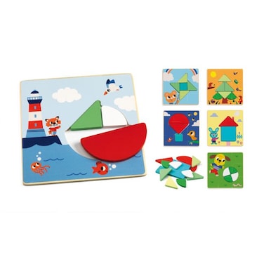 • <p>Recreate the picture scenes with the different coloured wooden geometric shapes! The set comes with 6 different illustrations to finish and 12 wooden pieces. Great for building fine motor skills, shape recognition and colour recognition. <p>Suitable From 3+ years<p>Dimensions Box 22 x 22 x 4cm<p>