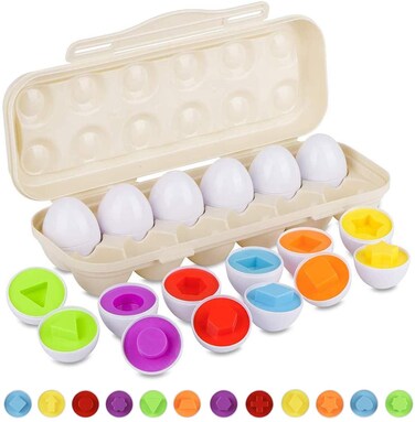 FUN TEACHING & TRAINING - 12 Shapes eggs get together to exercise children's hand-eye coordination and recognition skills, help preschoolers count, sort and match. Also these educational toys will improve hand dexterity, color recognition, and fine motor skills while engaging little minds