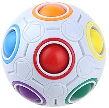 - Rainbow Ball is in a shape of a ball with 12 holes and 11 colorful balls inside that you fidget to pass balls from one hole to the other. Your objective is to scramble the colored balls, then figure out how to get them all back into their matching colored slots in all holes. The balls can be moved around using the empty hole, which allows the puzzle to be jumbled. Move all of the balls back into their proper places to solve the rainbow ball puzzle! The puzzle ball might look simple at first, but this fun addictive puzzle will keep kids busy for long periods of time. Exercises your memory and hands on skills is a perfect educational toy that will keep anyone busy for long periods of time .