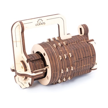 - UGEARS creates eye-catching and imaginative self-propelled wooden mechanical model kits that can be assembled without glue. Their designs are inspired by real-life mechanisms and embody love of art and ingenuity. UGEARS believes that building these beautiful working models should be a fun, engaging and rewarding experience for the whole family. In this world of video games and virtual reality, people still get excited when they find creative and fulfilling ways to use their hands. UGEARS fuels this excitement and gives individuals and families the opportunity to come together through the joy of hands-on modeling. Inspired by “The Da Vinci Code”. We dived into the world of conspirology, secrets and cryptography while designing our new intriguing Cryptex model. The Combination Lock consists of two parts. It opens if you set the right 3-digit combination. You can hide the keys, small items and your own secrets inside. The Lock has a convenient ""eyelet"" to hang the lock on a bag. Try to create your own Da Vinci Code’s Cryptex with 1000 combinations of 3 digit code. Assemble UGEARS Lock and get the idea of modern combination lock principle. • NO GLUE CONNECTION - Assembling without glue and chemicals • SELF ASSEMBLY - Details are already cut and ready to assemble • MECHANICAL - The model produce motion • EDUCATIONAL - Perfect for family projects through hands-on STEM learning • TYPE OF PRODUCT - Wooden Mechanical Model • MATERIAL - Plywood • MODEL SIZE - 3.82 x 2.6 x 3.86 inch (9.7 x 6.6 x 9.8 cm) • PACKAGING SIZE - 14.6 x 6.7 x 1.2 inch (37.5 x 17 x 3 cm) • PACKAGING WEIGHT: 0.38 Kg • NUMBER OF COMPONENTS - 34 parts • ESTIMATED TIME FOR ASSEMBLY - 2 hours • WARNING: Not suitable for children under 14 years • CAUTION: Contains sharp parts • MADE IN: Ukraine