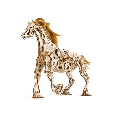 - UGEARS creates eye-catching and imaginative self-propelled wooden mechanical model kits that can be assembled without glue. Their designs are inspired by real-life mechanisms and embody love of art and ingenuity. UGEARS believes that building these beautiful working models should be a fun, engaging and rewarding experience for the whole family. In this world of video games and virtual reality, people still get excited when they find creative and fulfilling ways to use their hands. UGEARS fuels this excitement and gives individuals and families the opportunity to come together through the joy of hands-on modeling. Ugears Horse-Mechanoid – a unique assembling model that joins nature and mechanics. The innovative mechanism of this beauty makes the Bionic Horse a real walking quadruped. All the joints and movements closely resemble those of a real horse, but powered by rubber bands, gears, cranks and gravity. The Ugears Horse-Mechanoid model kit is made of sustainably sourced high grade wood and has everything you might need for assembly. Features: • TYPE OF PRODUCT - Self-propelled mechanical wooden models • EDUCATIONAL - Perfect for family projects through hands-on STEM learning • ASSEMBLY - No glue and special tools are needed • ECO-FRIENDLY - Uses wood materials • MECHANICAL - The models produce motion without electricity. Specification: • MATERIAL - Plywood • MODEL SIZE - 13.8 x 11.4 x 4.7 inch (35 x 29 x 12.5 cm) • PACKAGING SIZE - 14.6 x 6.7 x 1.6 inch (37.5 x 17 x 4.2 cm) • PACKAGING WEIGHT: 0.39 Kg • NUMBER OF COMPONENTS - 410 parts • ESTIMATED TIME FOR ASSEMBLY - 8-9 hours • WARNING: Not suitable for children under 14 years • CAUTION: Contains sharp parts • MADE IN: Ukraine