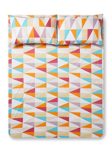 - This digitally printed bedsheet set will create a luxurious feel to any bedroom.<li>Featuring bold and bright graphic designs with a stunning border edging.<li>Multicolours allow you to style your room any way you like.<li>Bedsheet Size -240x254 cm<li>2 Pillow Case - 50x75 cm<li>Sheet Type -Flat sheet<li>Size - Queen Size<li>Comfort Level - Firm