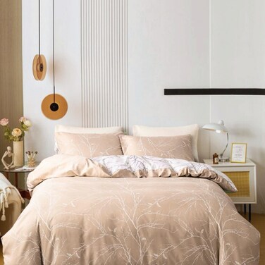 Luna Home Queen size 6 pieces, without filler, reversible duvet cover set, pine brown color, twigs design.
