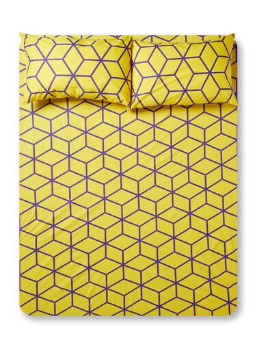 Rishahome 3-Piece Printed Flat Sheet Set Cotton Queen Size 180 TC 41086 Marigold Yellow