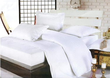 6 pcs white Stripe Bedsheet & Duvet cover Set