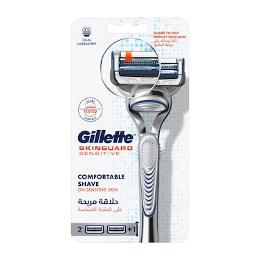 Gillette Skinguard Sensitive Razor Handle With 2 Blades Silver 3 PCS