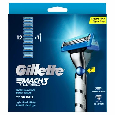 Gillette Mach3 Turbo 3d Razor Handle With Blades Blue 13 PCS