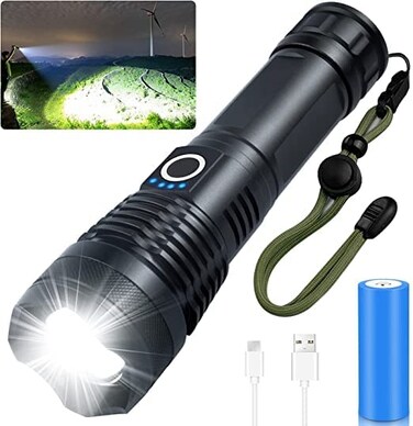 BBStore Rechargeable Flashlight High Lumens, Brightest Powerful Led Flashlight, Super Bright Waterproof Flashlight with Battery, Zoomable, 5 Light Modes, for Emergencies
