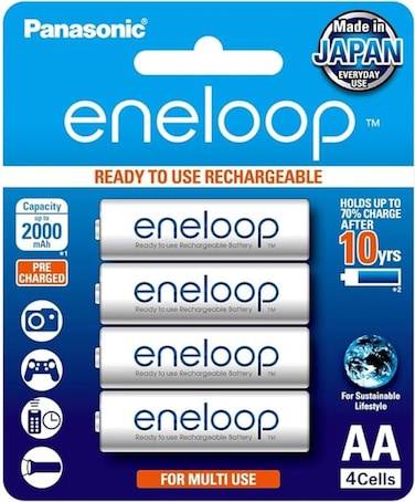 Eneloop (AA) 4-Cells Pre-Charged 2000mAh Rechargeable Batteries. Made in Japan