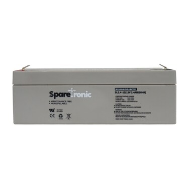 The Sparetronic SL2.4-12 is a VRLA (Valve Regulated Lead-Acid) battery that is designed to provide a steady and reliable power output. With a voltage of 12V and a capacity of 2.40Ah at a 20-hour rate, it is ideal for a wide range of applications that require a consistent power source. The battery has a compact design with dimensions of 178.00mm in length, 35.00mm in width, 60.00mm in height and 66.00mm in total height. It weighs 0.85kg and features F1/F2 terminal type. This battery is designed to have a long service life and minimal maintenance, making it a reliable choice for use in renewable energy systems, telecommunications, and backup power systems.