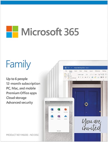 Microsoft 365 Family - for PC, Mac, iOS and Android, English Subscription, Middle East Version, 1 Year License for upto 6 users - [6GQ-01172]
