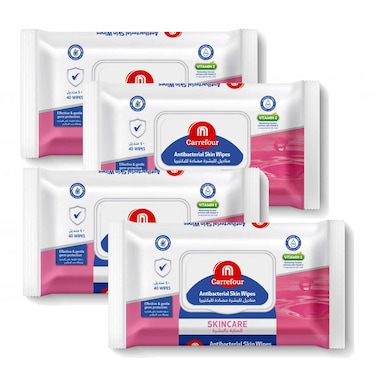 Carrefour Anti-Bacterial Skin Care 40 Wipes White Pack of 4
