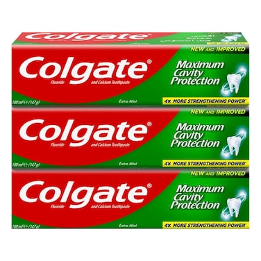 Colgate Maximum Cavity Protection Fluoride Toothpaste Extra Mint White 100ml Pack of 3