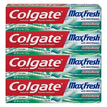 Colgate Maxfresh With Whitening Breath Strips Fluoride Toothpaste Clean Mint 170g Pack of 4