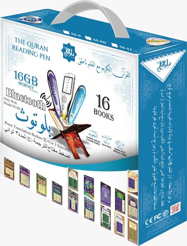 Size Of Quran Book is (19CM). Size Of Box is (25CM). Built in Memory (4GB). Box Colour May be Different But Model is Same M-9B. The Quran Reading Pen, Allows you to Learn & Listen Quran in the Voice of Multiple Readers, You can read and Listen at the same time. Readers' Inside are (As-Sudais), (Abdul Basit Mujawad), (Al-Maeqali), (Al-Ajmy), (Al-Ghamidi), (Al-Minshavi), (Al-Afasy), (Al-Hussary), (M-Jabreel), (As-Shuraim), (Word By Word), (Tafsir Jalalin), Translation Languages Inside are (English), (Urdu), (French), (Turkish), (Farsi), (Arabic), Books Comes With (Sahih Muslim), (Sahih Al-Bukhari), (Qaida Noorania), (Talking Dictionary), (Riyad-us-Saliheen), (The Biography of the Holy Prophet (PBUH), (Stories of the Prophets & Many More)