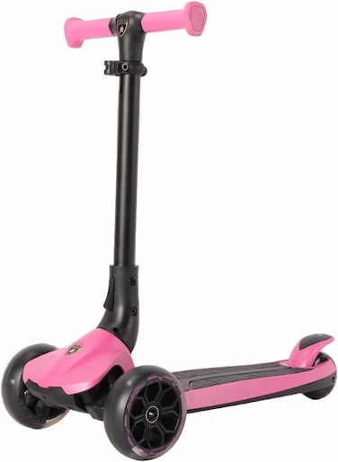 - Lamborghini 3-Wheel Folding Kick Scooter is a licensed modern scooter that combines the greatest qualities of a scooter and a skateboard that will encourage your kids to play outside ! The body and the deck are made of heavy duty plastic and nylon which makes the ride as safe and secure, The three PU wheels are luminous and 3 speed settings which provide extra control and balance.