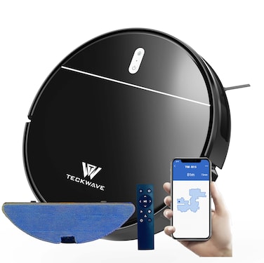 - Power: TECKWAVE (TW-R15) robot vacuum cleaner and mop is a highly intelligent vacuum cleaner with dual navigation (Gyro+SLAM) and suction power of 3500Pa, 600ml of dust capacity and 360ml water tank capacity making it suitable for both hard floor and carpet, dust, pet hair and any size littler or debris.