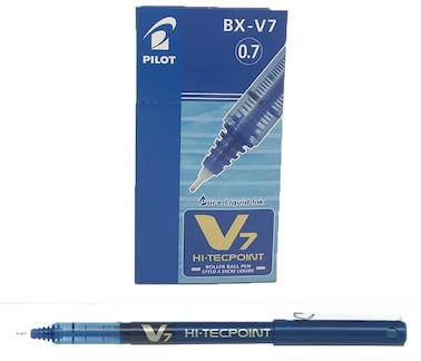 Pilot V7 Hi-Tecpoint Rollerball Pen, 0.7mm Tip - Blue, Box Of 12