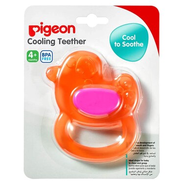 The Pigeon Cooling Teether N627 Orange is a soothing and cooling teether designed to help alleviate teething discomfort for babies.